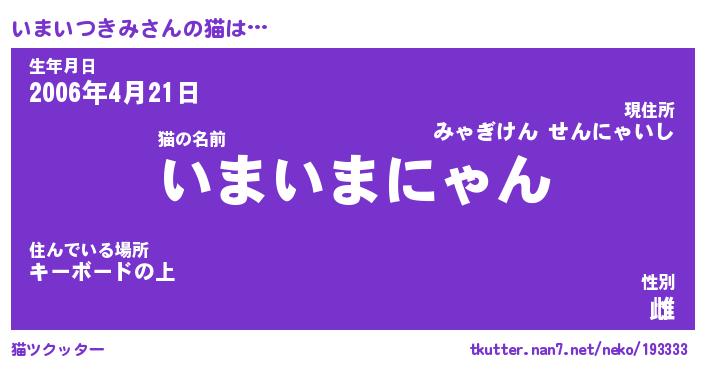 | ポケモン風あだ名 | 『イマチュウ』『イマイダネ』 |