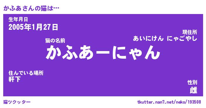 | 意味不明あだ名 | 『ペロリンかふあ』『かふあフォーエバー』 |