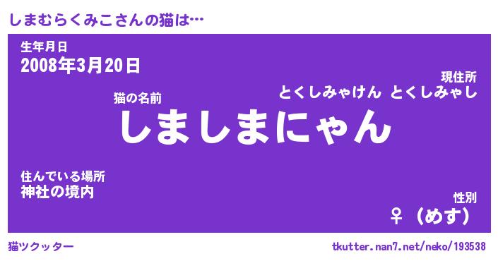 | ファンタジー風あだ名 | 『シマフェル』『ファントムシマス』 |