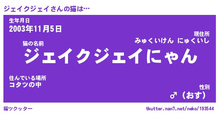| 男性向けラノベタイトル風あだ名 | 『ジェイクジェイの憂鬱』 |