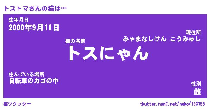| ポケモン風あだ名 | 『トスチュウ』『トストダネ』 |