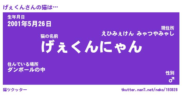 | 意味不明あだ名 | 『ペロリンげぇくん』『永久保存げぇくん』 |