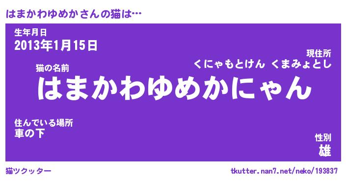 | 女子向けラノベタイトル風あだ名 | 『(仮)はまかわゆめかのやんごとなき事情』 |