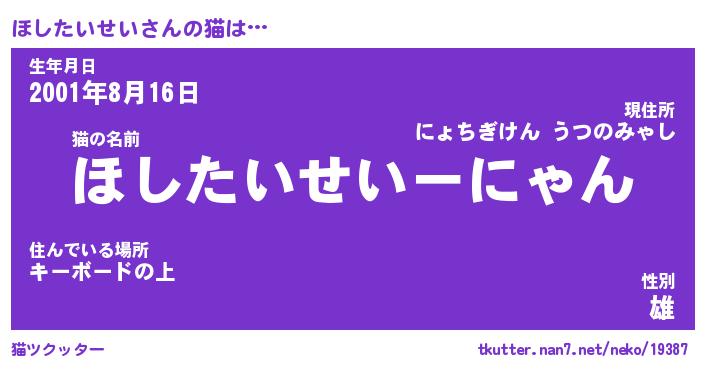 | 生年月日? …「くろねこ」 | 8月01日 10:16 |