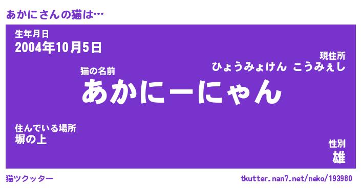 | 意味不明あだ名 | 『ペロリンあかに』『あかにフォーエバー』 |