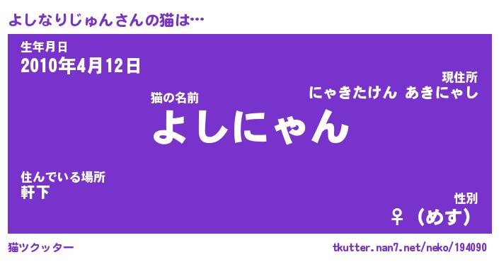 | ポケモン風あだ名 | 『ヨシチュウ』『ヨシナダネ』 |