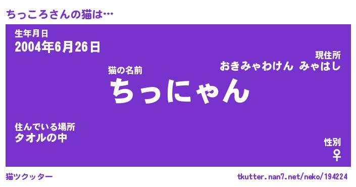 | 生年月日? …「くろねこ」 | 8月01日 10:16 |