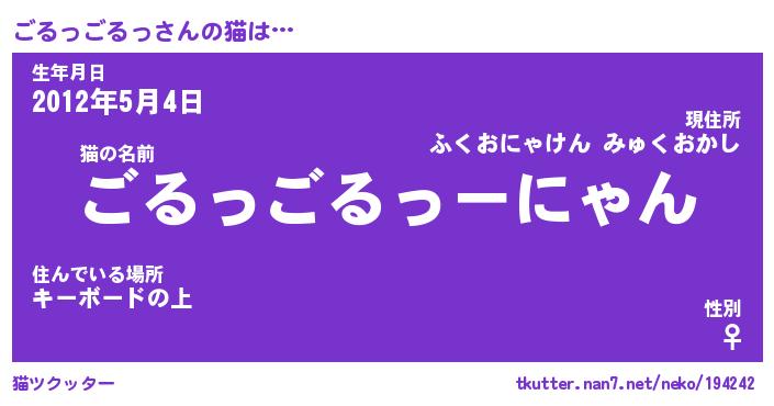 | 2回繰り返すあだ名 | 『ごるごる』『ごごるる』『ぬめぬめ』 |