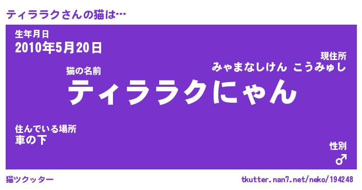 | 男性向けラノベタイトル風あだ名 | 『ティララクの憂鬱』 |