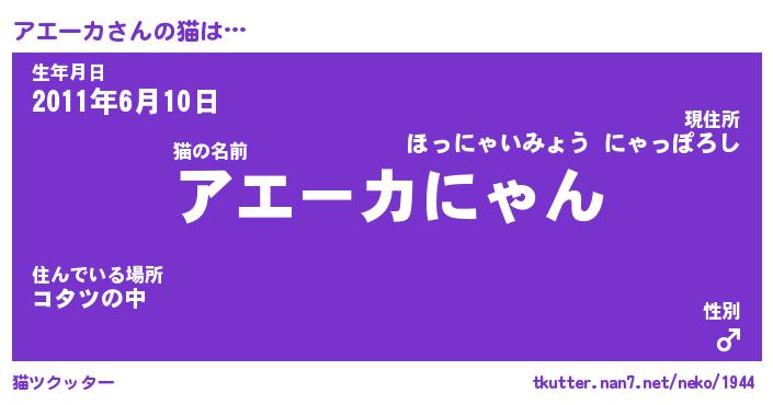 | 意味不明あだ名 | 『ペロリンアエーカ』『永久保存アエーカ』 |