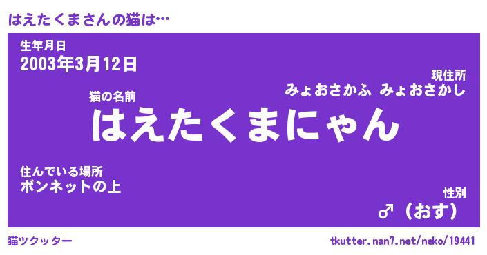| 生年月日? …「くろねこ」 | 8月01日 10:16 |