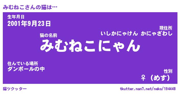 | 意味不明あだ名 | 『ペロリンみむねこ』『永久保存みむねこ』 |