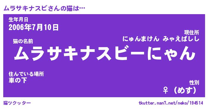 | 生年月日? …「くろねこ」 | 8月01日 10:16 |