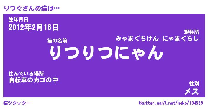 | ・・・?そんなとこ住んで(略 …「りつの」 | 12月14日 09:30 |