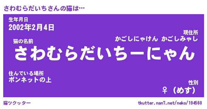 | 生年月日? …「くろねこ」 | 8月01日 10:16 |