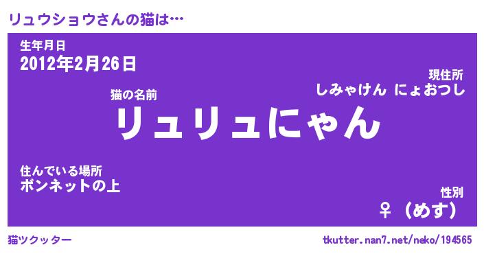 | 2回繰り返すあだ名 | 『リュリュ』『リリュュ』『ねとねと』 |