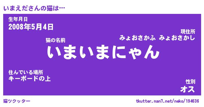 | ファンタジー風あだ名 | 『イマフェル』『エターナルイマエダー』 |
