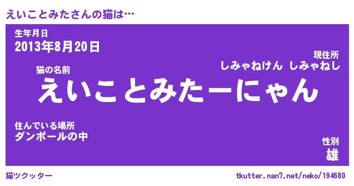 | 生年月日? …「くろねこ」 | 8月01日 10:16 |