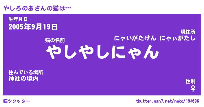 | 生年月日? …「くろねこ」 | 8月01日 10:16 |