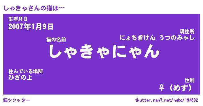 | 意味不明あだ名 | 『ペロリンしゃきゃ』『永久保存しゃきゃ』 |