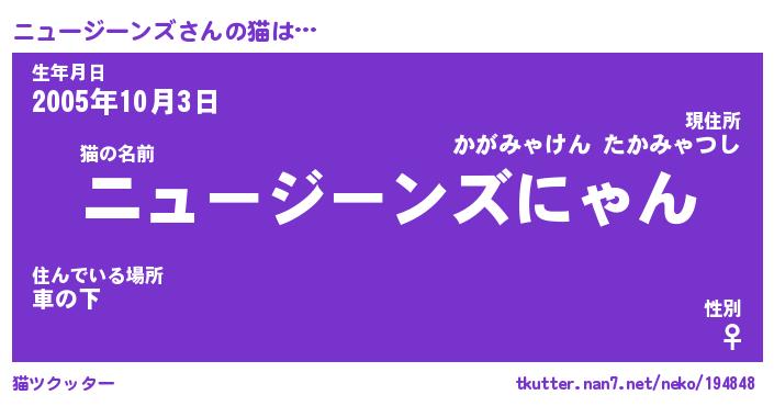 | ヘコむあだ名 | 『ニュにゅー』『豆乳』『ニュっ子』 |