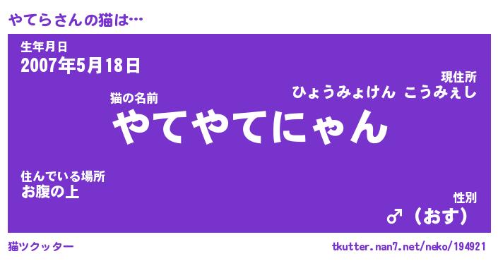 | ファンタジー風あだ名 | 『ヤテフェル』『エターナルヤテラー』 |
