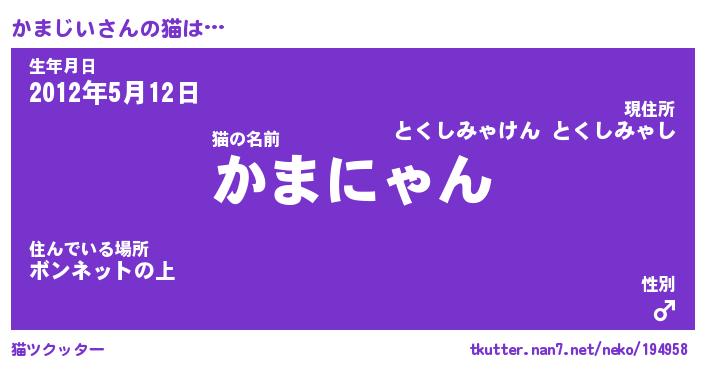 | 意味不明あだ名 | 『ペロリンかまじい』『永久保存かまじい』 |