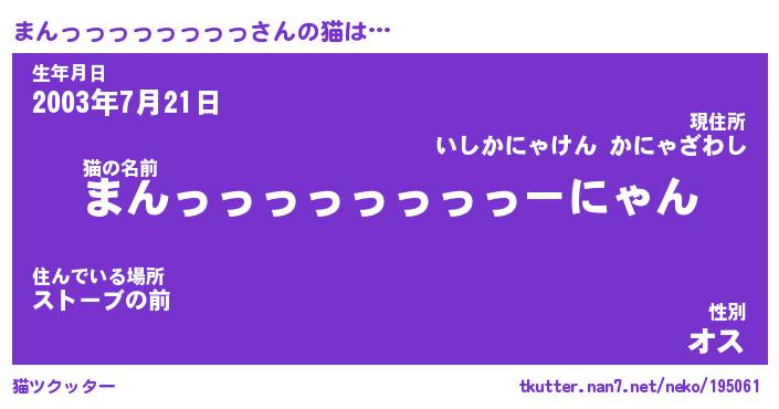| 生年月日? …「くろねこ」 | 8月01日 10:16 |