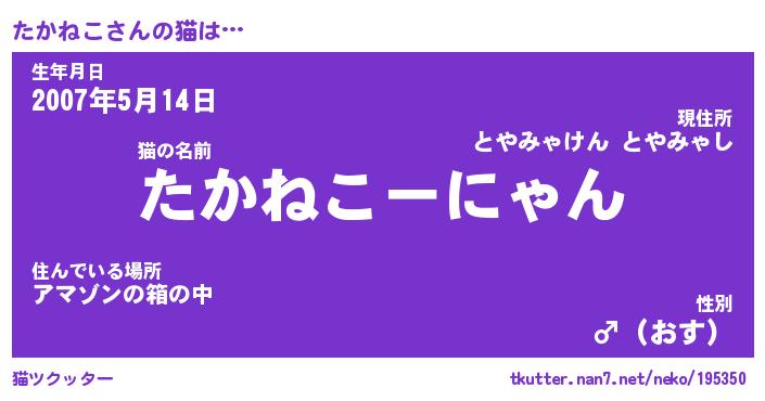 | 意味不明あだ名 | 『ペロリンたかねこ』『永久保存たかねこ』 |