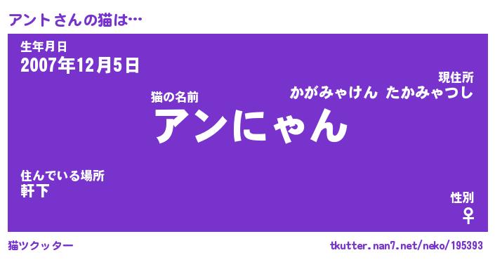 | 可愛いあだ名 | 『アんアん』『アンちー』 |