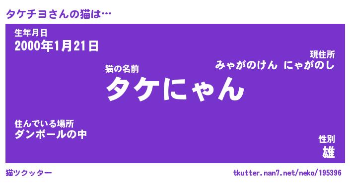 | 2回繰り返すあだ名 | 『タケタケ』『タタケケ』『ぬらぬら』 |