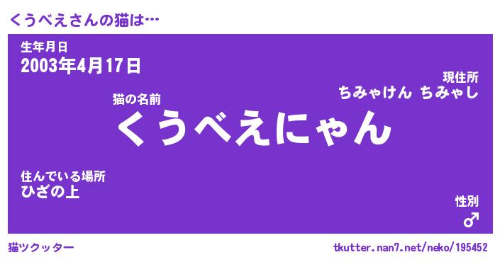 | 意味不明あだ名 | 『ペロリンくうべえ』『永久保存くうべえ』 |