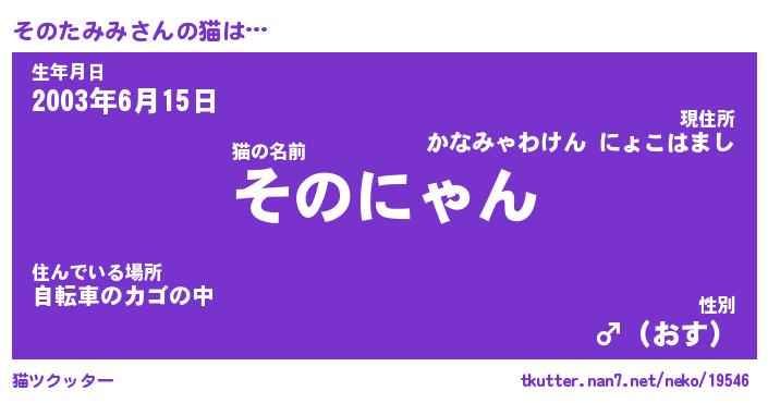 | ファンタジー風あだ名 | 『ソノフェル』『エターナルソノタミミー』 |