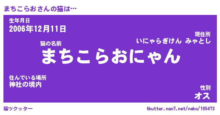 | ツイッター | まちこらおさんのツイッターID『konnyaku_man』 |