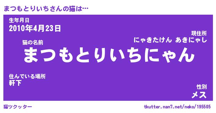 | 男性向けラノベタイトル風あだ名 | 『まつもとりいちの憂鬱』 |