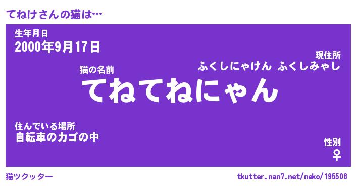 | ヘコむあだ名 | 『てねにー』『酢こんぶ』『てねっ子』 |