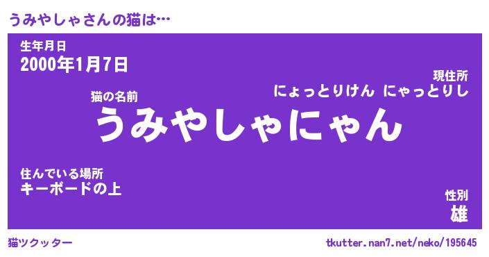 | 男性向けラノベタイトル風あだ名 | 『うみやしゃの憂鬱』 |