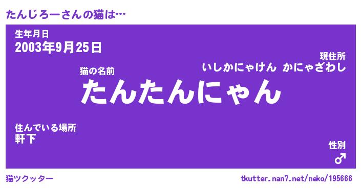 | ファンタジー風あだ名 | 『タンフェル』『エターナルタンジローー』 |