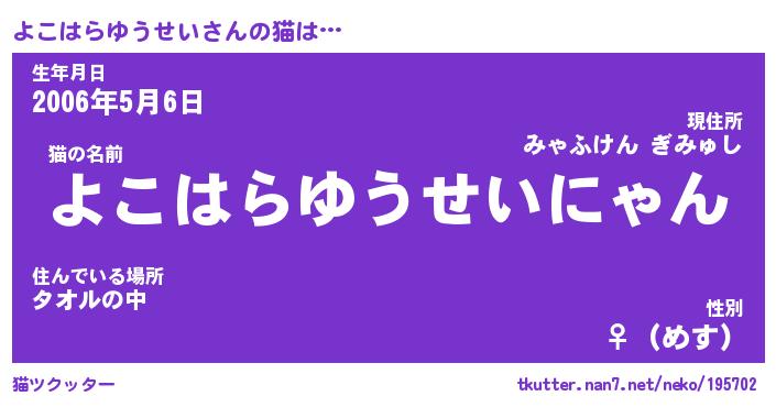 | 生年月日? …「くろねこ」 | 8月01日 10:16 |