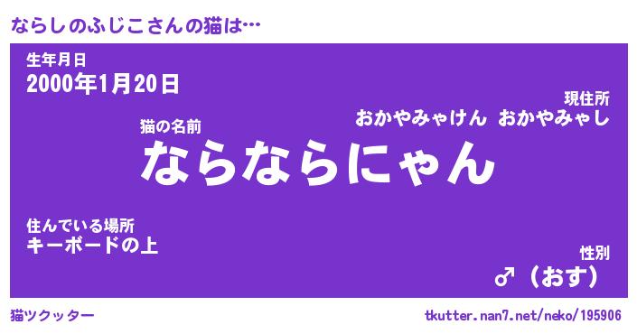 | 肩書あだ名 | 『ならしのふじこ店長』 |