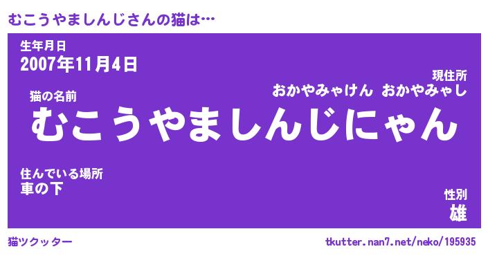 | 肩書あだ名 | 『むこうやましんじ御曹司』 |