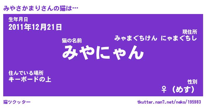 | ファンタジー風あだ名 | 『ミヤフェル』『ファントムミヤス』 |