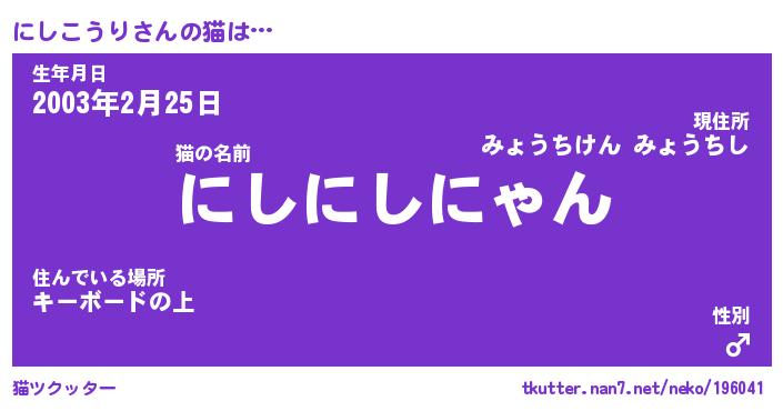 | 2回繰り返すあだ名 | 『にしにし』『ににしし』『ぽそぽそ』 |