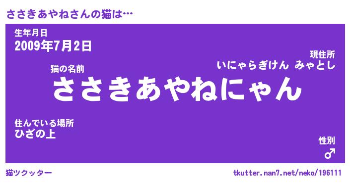 | ヘコむあだ名 | 『ささにー』『なまこ酢』『ささを』 |