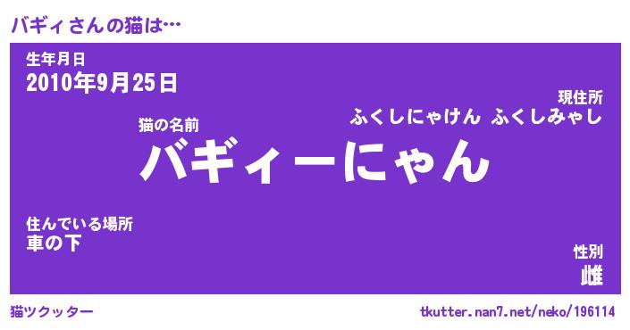 | ポケモン風あだ名 | 『バギチュウ』『バギィダネ』 |