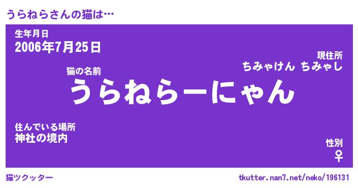 | 意味不明あだ名 | 『ペロリンうらねら』『永久保存うらねら』 |
