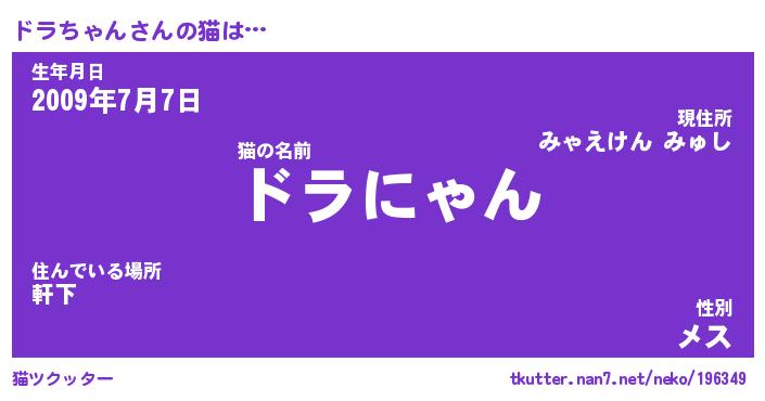 | 2回繰り返すあだ名 | 『ドラドラ』『ドドララ』『おやおや』 |