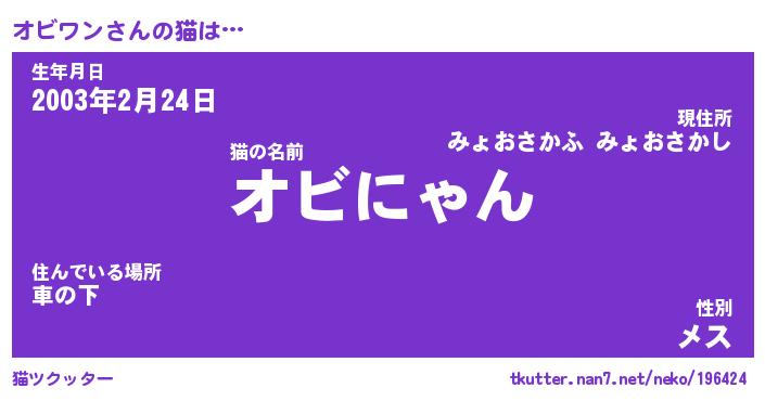 | ポケモン風あだ名 | 『オビチュウ』『オビワダネ』 |