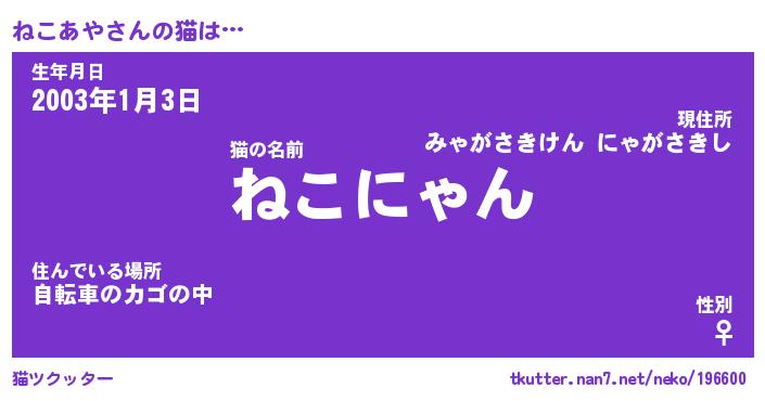 | ファンタジー風あだ名 | 『ネコフェル』『エターナルネコアヤー』 |