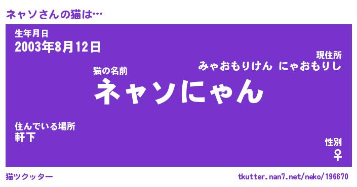| ポケモン風あだ名 | 『ネャチュウ』『ネャソダネ』 |